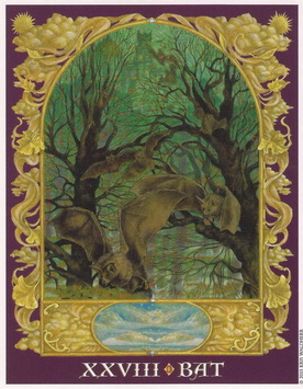 XXVIII ЛЕТУЧАЯ МЫШЬ Ключевые слова: За пределами страха. Неожиданные преобразования. Удача. Несмотря на века суеверий и предубеждений в отношении летучих мышей, появление этой карты сулит удачу. На самом деле это незаметное и умное животное помогает людям, поедая разносящих болезни насекомых. По сей день в народных поверьях летучая мышь ассоциируется с силами темноты, причиной чему служит ночной образ жизни и необычные гастрономические привычки вампира-мыши. Эти маленькие животные редко вредят своим жертвам и предпочитают скот людям, однако, вампиры, которые ассоциируются с этими существами, стали универсальными символами зла. По всей Европе цыгане распространили истории о вампирах, Носферату, где было предупреждение о не умершем монстре, покинувшем свой гроб, чтобы охотиться на ничего не подозревающих людей. Эту легенду популяризировал Брэм Стокер в своём романе «Дракула». В Азии это кроткое животное пользуется почтением. Китайский иероглиф «фу» означает счастье и летучую мышь, а даосский бог счастья Фу-ксинг представлен в виде летучей мыши.