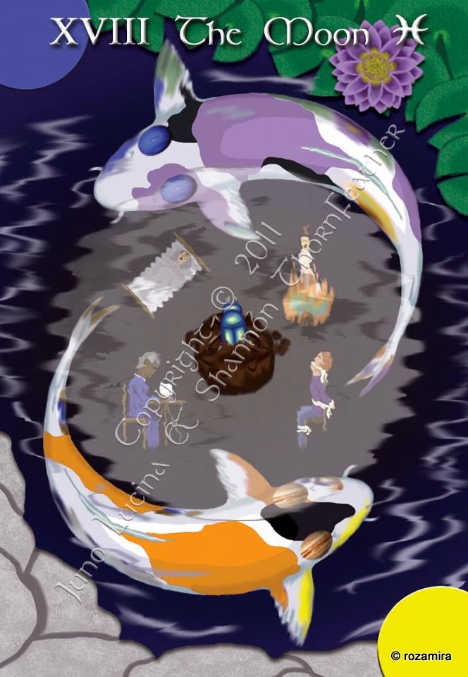 Financial resources are flowing the querent’s way; current investments (especially of an artistic nature) will have great value in the future, and any hunches regarding profitable new ventures will flourish. Because the Moon can represent children, this card also reassures the querent that his or her children are stable and will succeed.