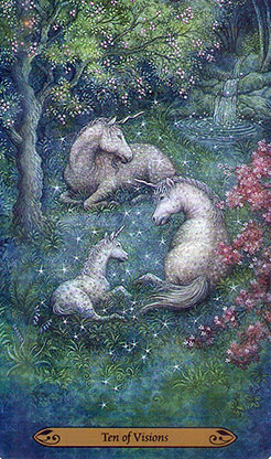 Масти: Жезлы — Заклинания (spells), Чаши — Видения (visions), Мечи- Вызов (challenges), Пентакли- Дары (Boons)