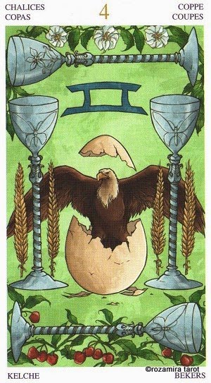 Прямо: Объективность, мир, воспринимаемый чувствами, эксперименты, работа, изнурительные поиски истины. Знания, обретенные через боль, задача, которую нужно выполнить, надоевшая, но необходимая работа. Пассивное ясновидение, ясность ума. Путешествие по воде.